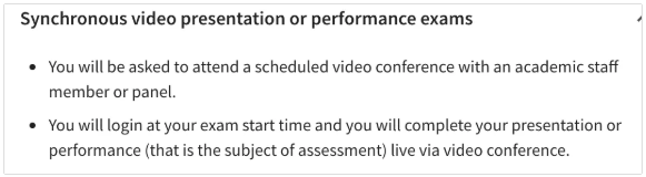 5,Synchronous Video Presentation or Performance Exams演講/視頻類同步考試: